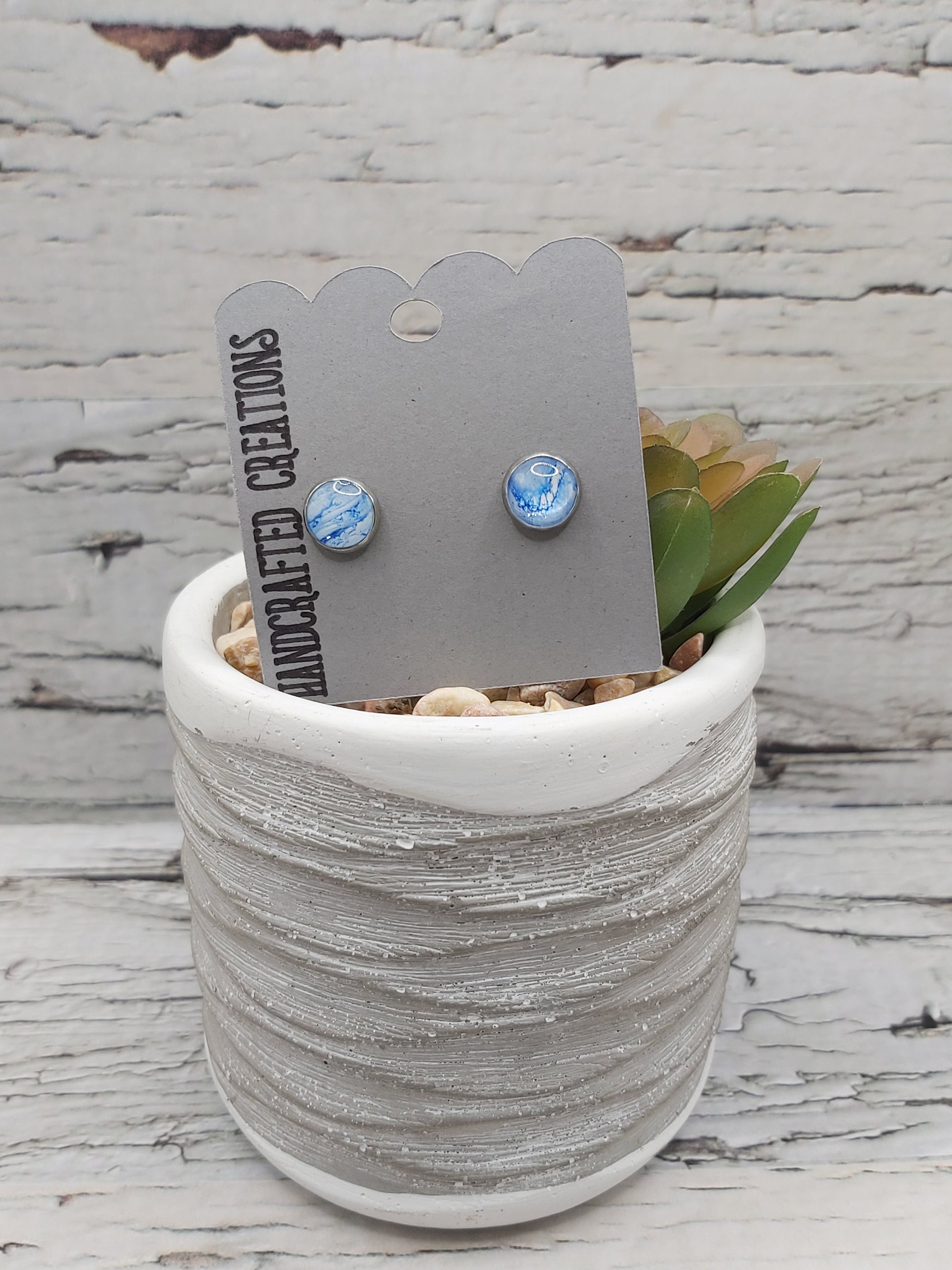 These cute studs are crafted with stainless steel ear posts. The bezel is filled with polymer clay and coated with resin to give a durable shine.